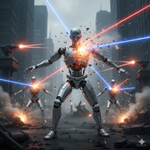 Jake took a deep breath. He didn’t feel pain. Not human pain anyway, but his internal structure was composed of artificial nerves and over three million pain receptors woven around a titanium endoskeleton, which was then encased in lab-grown synthetic skin that was more elastic and durable than its human counterpart. It gave the illusion of pain, and the illusion was excruciating. They made them humanlike because the enemy was human. A soldier needed to know what it felt like to shred a man with gunfire, to blow him to bits, to plunge sharp steel into his abdomen; a field medic needed hands-on training, real-world conditions, willing subjects, slabs of meat with a weak pulse; cops needed skin and bone to club with expandable batons, to tase, to boot stomp, to double tap. A military-grade AI-powered Model 4 Training Unit made a better target than a paper one.